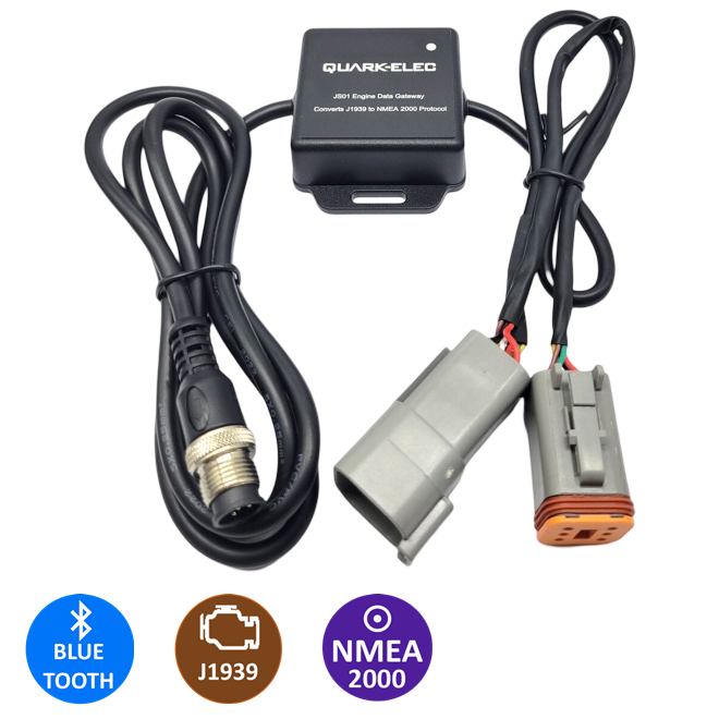 The JS01 is designed for use in marine environments and provides a simple, effective way to integrate SAE J1939-compatible devices into an NMEA 2000® network. By connecting directly to the J1939 network of compatible engines, transmissions, or gensets, the JS01 converts essential data such as engine speed, operating hours, fuel level, oil temperature, and gear ratio. This information is then made available on multifunction displays and other NMEA 2000 devices onboard.