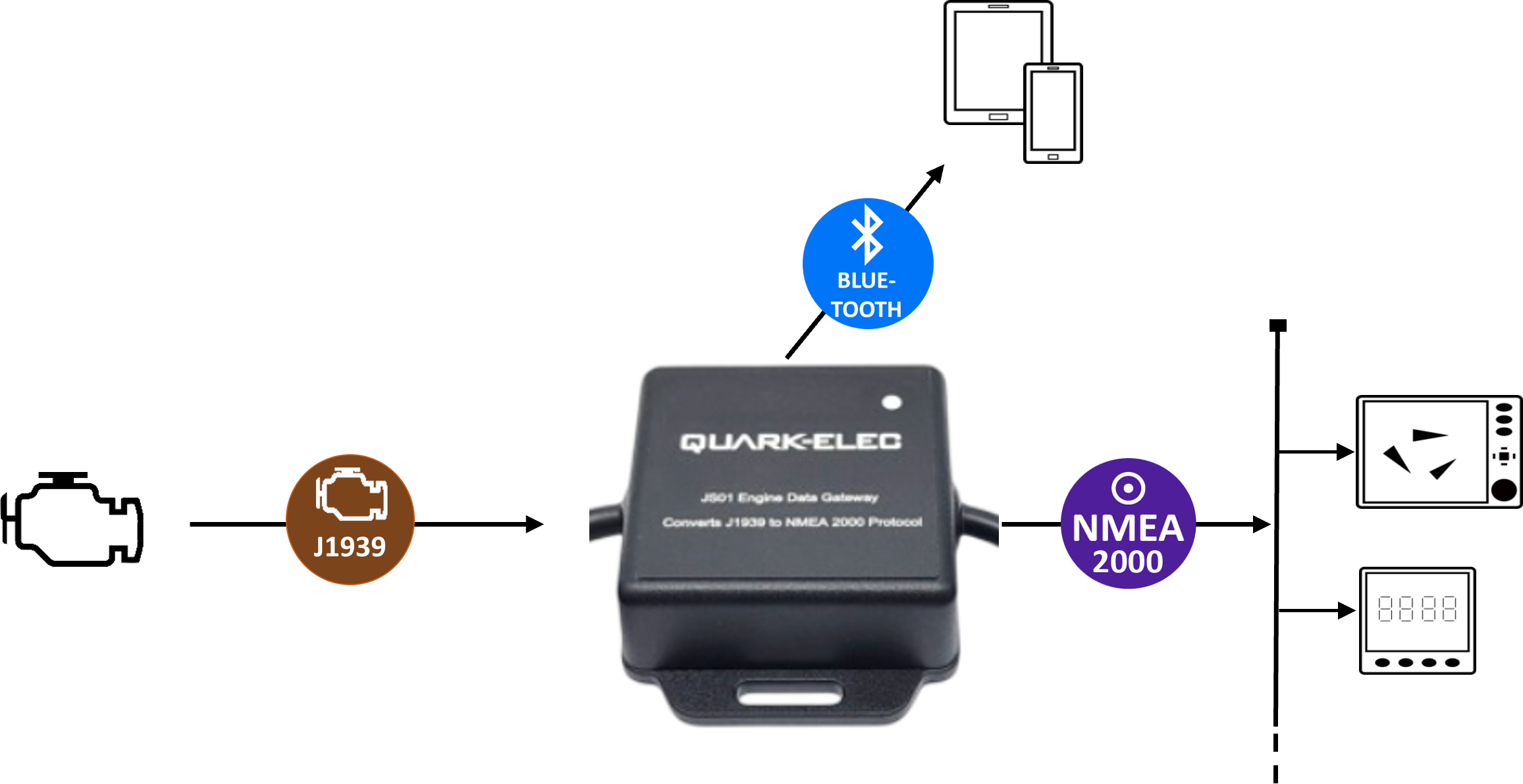 - Seamlessly converts essential engine data from J1939 interface to the NMEA 2000 network